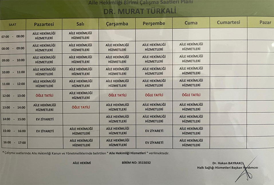 Aşağıda Hekimlerimizin Esnek Mesai Planlarını Görebilirsiniz.